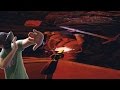 Sudden switch to a mine shooting ride to a scary escape.