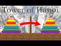 "Tower of hanoi" is, well, the old round block game where you have to move all the blocks from one side to the other side without putting a larger block on top of a smaller block. You know the one. If you don't, I'm not google, jeez. Anyway that's all